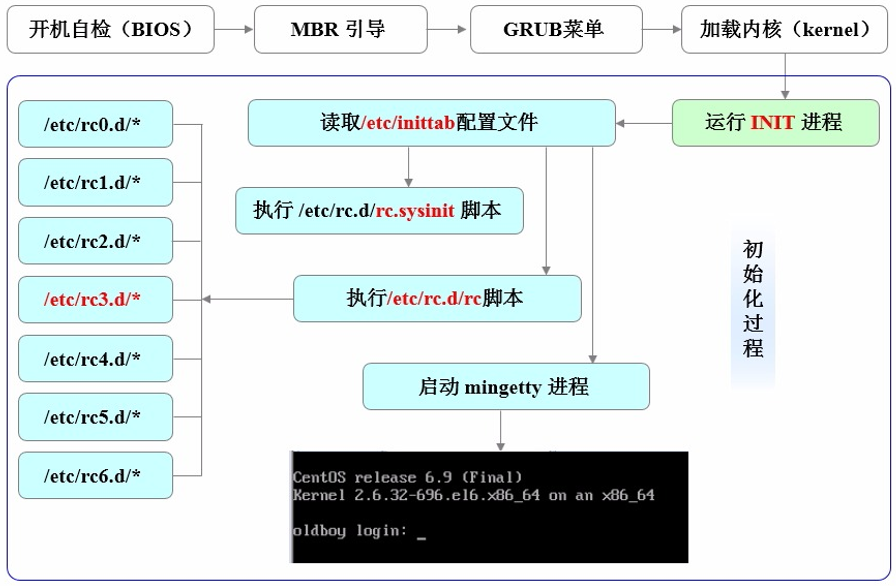 初始化进程作为Linux系统的第一个进程,它需要完成Linux系统中相关的初始化工作,为用户提供 合适的工作环境。 RHEL/CentOS 7 系统已经替换掉了熟悉的初始化进程服务System V init正式采用 全新的systemd初始化进程服务。如果您之前学习的是 RHEL/CentOS 6或7 系统,可能会不习惯。 systemd初始化进程服务采用了并发启动机制,开机速度得到了不小的提升。