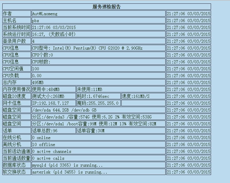 echo "<td>当前通话数量</td>">>/opt/checkreport.html