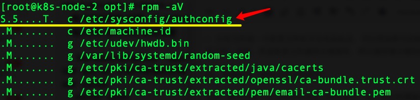 如图可以看到/etc/sysconfig/authconfig这个文件已经和安装时不一致了,当然这个是一配置文件,是经过我们人为修改过的。