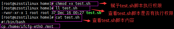 8、在home目录下编写一个test.sh脚本,脚本功能是把/home下ifcfg-eth0这个文本复制到/mnt目录下。