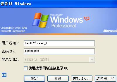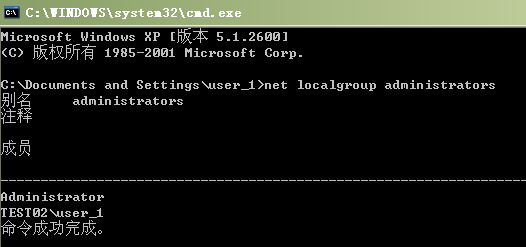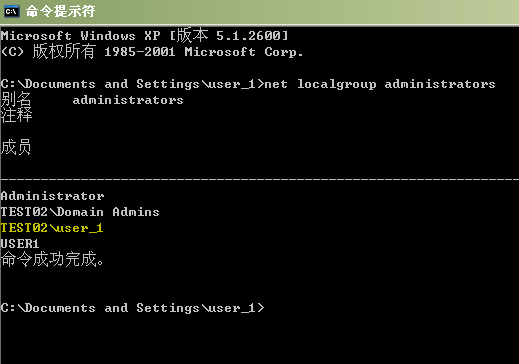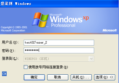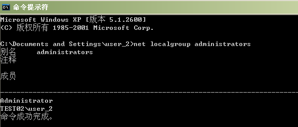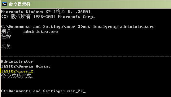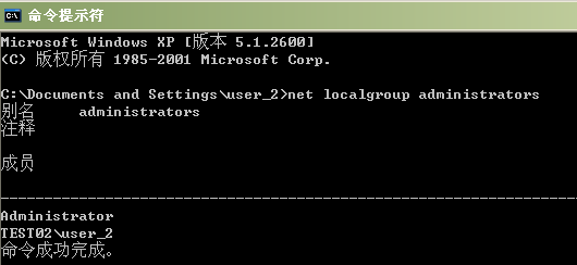 换一个test02\user_2帐号,显然,已将前面加入的user_1帐号删除,还有其他除administrator以外的用户帐号被删除(本地的USER1)