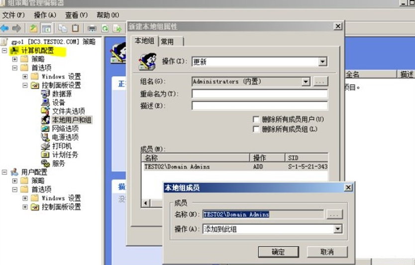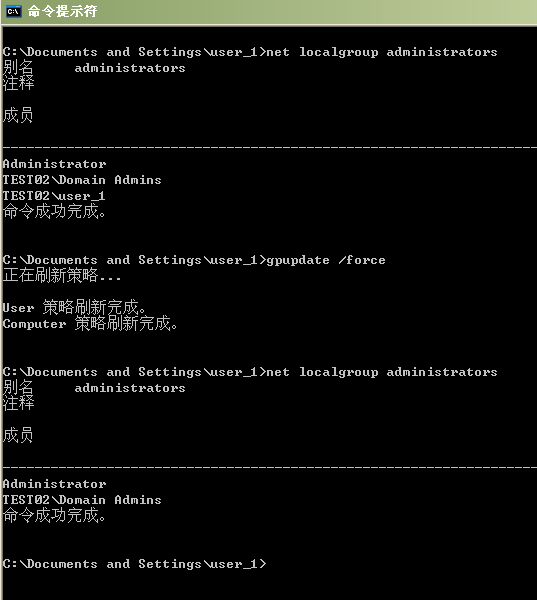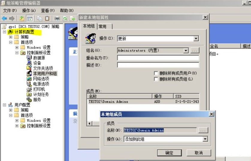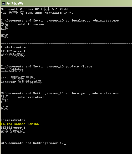 刷新策略就可以看到TEST02\Domain Admins加入到客户机本地管理员组了