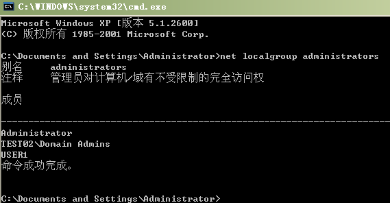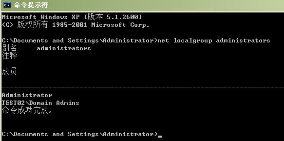 为了避免干扰,我创建了另一个2008R2的域来验证第2种方法,该域WINXP03客户机的初始本地管理员成员如下: