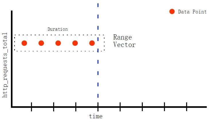 Range vector(范围向量)表示一段时间范围里的时序,每个时序可包含多个点