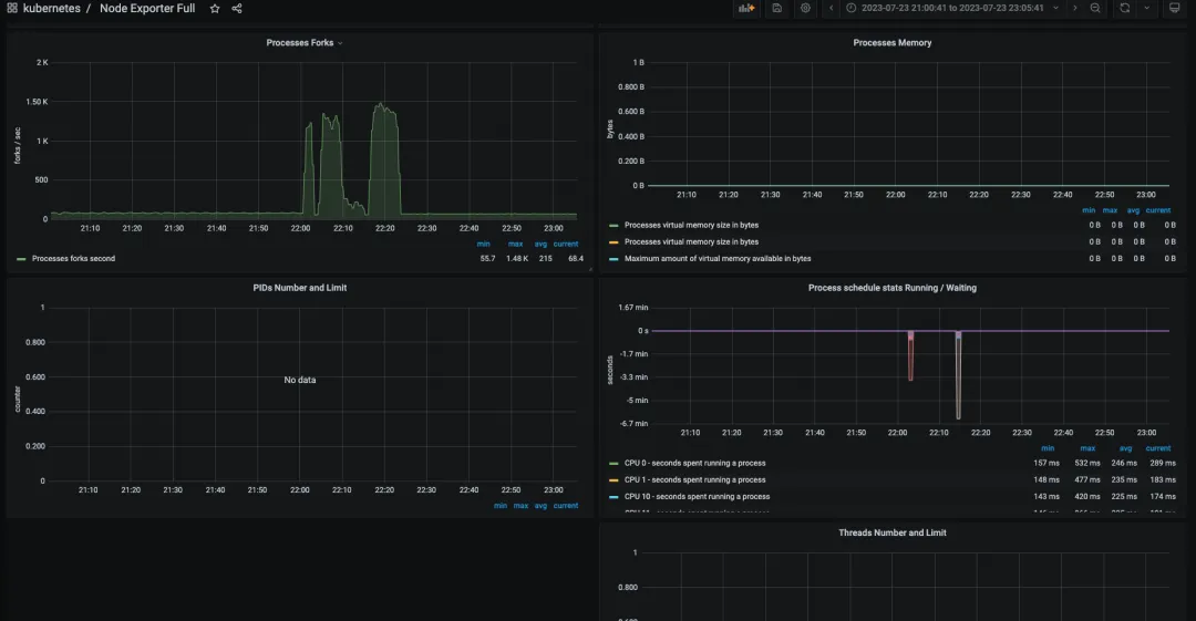 从22点开始出现了大量的 Processes Forks, 没收集到 PIDs Number 和 Threads Number