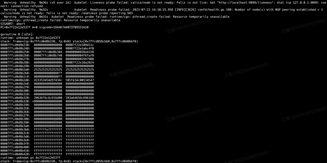 结论:全局 PID(/proc/sys/kernel/pid_max ) 达到上限,导入 calico 无法 fork 进程,进而监控检查失败,存活探针自动重启